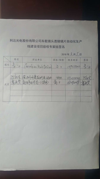 | ??? 利達(dá)光電股份有限公司車載鏡頭透鏡鏡片自動(dòng)化生產(chǎn)線建設(shè)項(xiàng)目竣工環(huán)境保護(hù)驗(yàn)收意見 |
