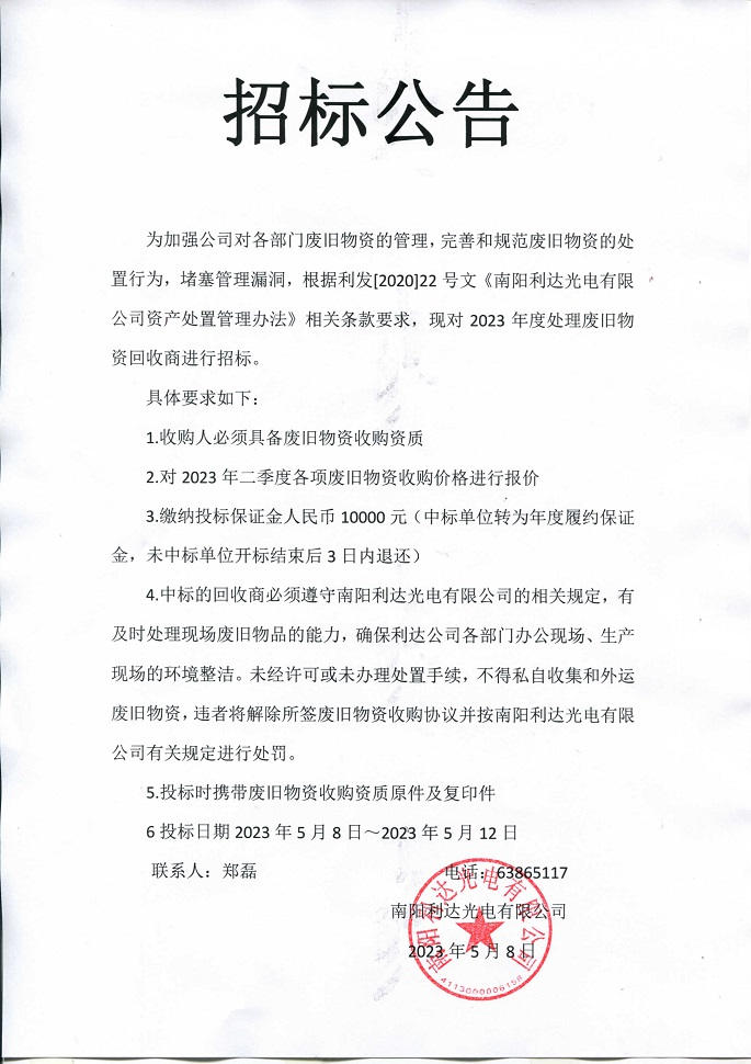 - (2023-05-08)廢舊物資招標公告