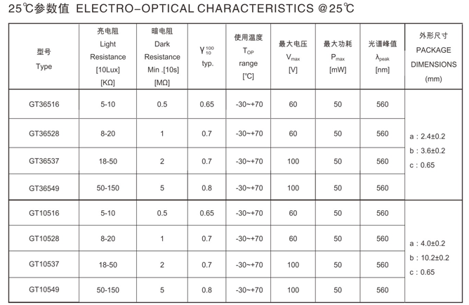 貼片型光敏電阻系列SMD Photocells Series